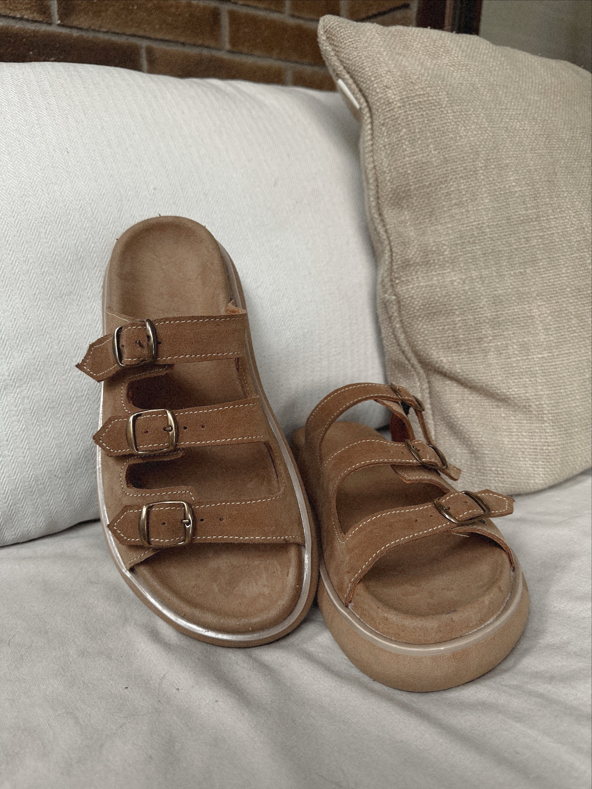 Sandalia Voga Camel 🌟 plataforma de 3 cm que te posiciona en el centro de atención. Tres hebillas de cierre rápido ofrecen seguridad y versatilidad en cada paso. 💎 Diseño revolucionario que captura la esencia de lo que está en boga, sin renunciar a la comodidad que mereces. La plataforma eleva tu presencia mientras mantiene estabilidad total. 🚀 Atrevida, moderna y lista para quien busca destacar. Cada detalle fue pensado para que camines con poder y estilo. ✨ Tu próximo imprescindible.